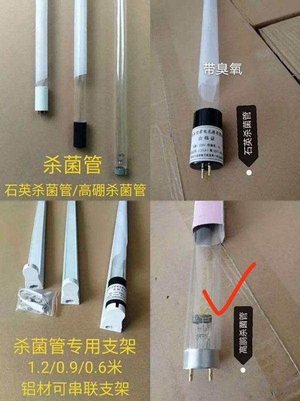 但市面上目前分為兩種消毒燈,一種是高硼管,一種是石英管,如下圖所示,高硼管紫外線殺菌燈的結構 (UV燈)實際上是屬于一種低壓汞燈,和普通日光燈一樣,利用低壓汞蒸汽(<10-2Pa)被激發(fā)后發(fā)射紫外線。不同的是日光燈的燈管采用的是普通玻璃,253.7nm紫外線不能透出來,只能被燈管內(nèi)壁的熒光粉吸收后激發(fā)出可見光。如果改變熒光粉的成分和比例,它就可以發(fā)出我們通常所見的不同顏色的光。